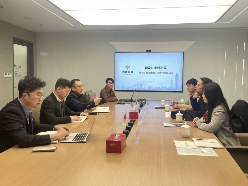 在鲁班软件总经理张洪军的热情接待下,罗雄院长一行首先了解了公司的发展历程、荣誉成就以及核心技术。鲁班软件,作为基于BIM的数字孪生技术服务商,不仅在国内市场拥有广泛的品牌影响力,还致力于打造中国工业软件的民族品牌。