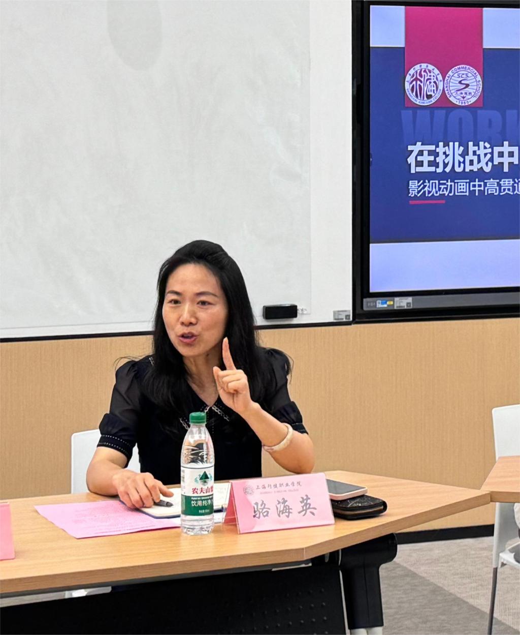6月26日,一场意义非凡的研讨会在上海市商业学校崇文楼智慧教室召开。研讨会聚焦于我校中高贯通影视动画专业学生转段议题。出席研讨会的有上海市商业学校副校长金南辉、创意设计教学部主任王少琳、副主任徐春凌、教务处副主任唐丽、影视动画专业负责人金鑫、专业骨干教师赵满清、影视动画211班主任崔文爽老师和班级全体同学。学校创意开云online(中国)院长骆海英、影视传媒制作专业群主任袁莉莉与会。
