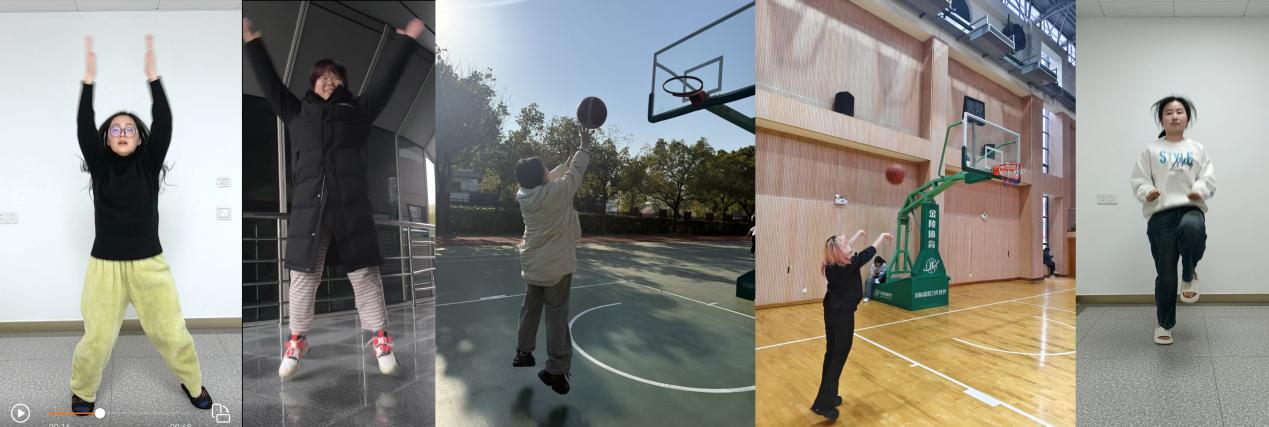 本次活动设置了三周的运动打卡项目:第一周为开合跳打卡周,锻炼学生协调性与心肺能力;第二周为投篮打卡周,考验精准度与专注力;第三周为混合打卡周,女生进行1分钟高抬腿,男生挑战1分30秒高抬腿,强化核心。学生们通过上传运动视频或照片完成每次打卡,既保证了参与活动的真实性,也营造了“比学赶超”的积极氛围,根据打卡次数赋予同学们相应的学时奖励,鼓励持之以恒地参与体育锻炼。