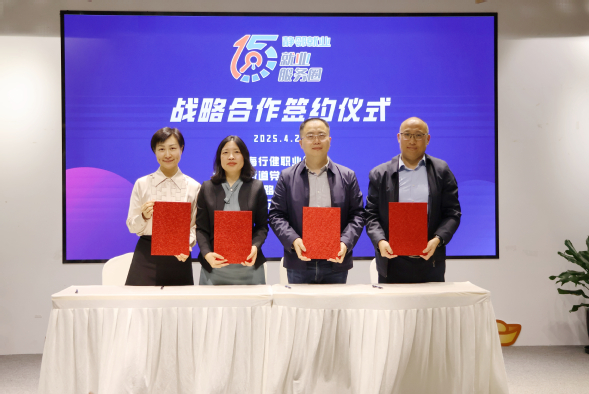 活动现场章卫芳副校长代表学校与大宁路街道社区党委副书记叶桦、街道商会会长邓朝义、上海星满园企业管理有限公司总经理于鸿博进行了高校、政府、商会、园区共同签订四方战略合作协议,携手推进“15分钟就业服务圈”建设,为深化就业育人实效注入新动能。