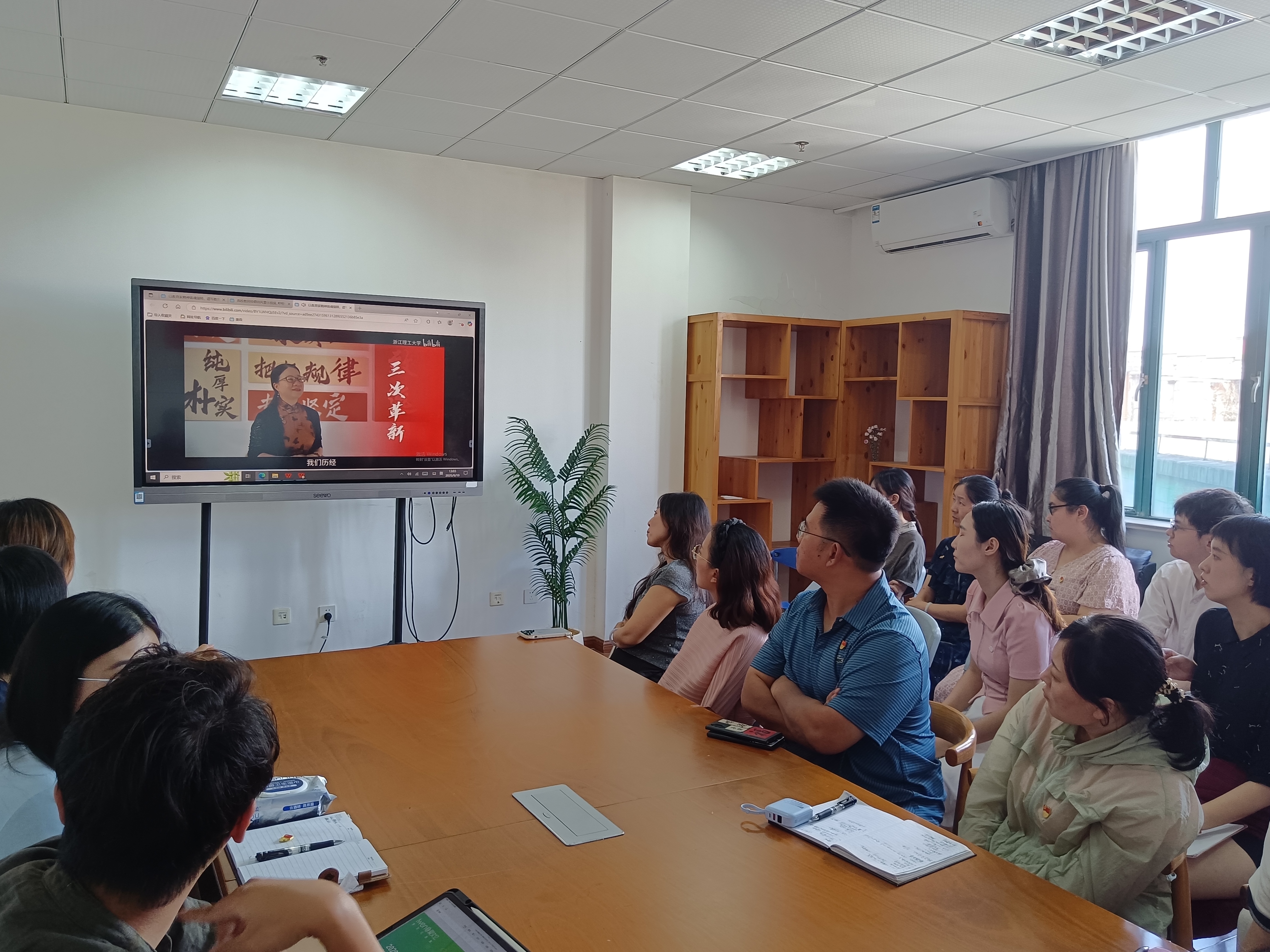 在践行教育家精神与红色教育理念部分,周书记鼓励教师持续学习与自我提升,党员教师更要发挥先锋模范作用。活动最后,全体教师共同观看视频《匠心创新树人 一名党员教师三十年的教育追光之路》,吴巧英老师的事迹深深感染了在场的每一位教师。
