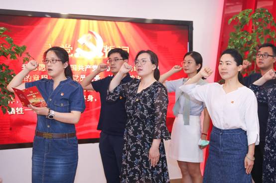 最后,全体党员重温了入党誓词,提醒每位党员始终牢记入党时的铮铮誓言。党委书记同时也寄语道:当举起右手重温入党誓言时,当年入党时豪迈的誓言,依然激动。宣誓是一种形式,更是一种激励、一种鞭策、一种对信仰的强化。