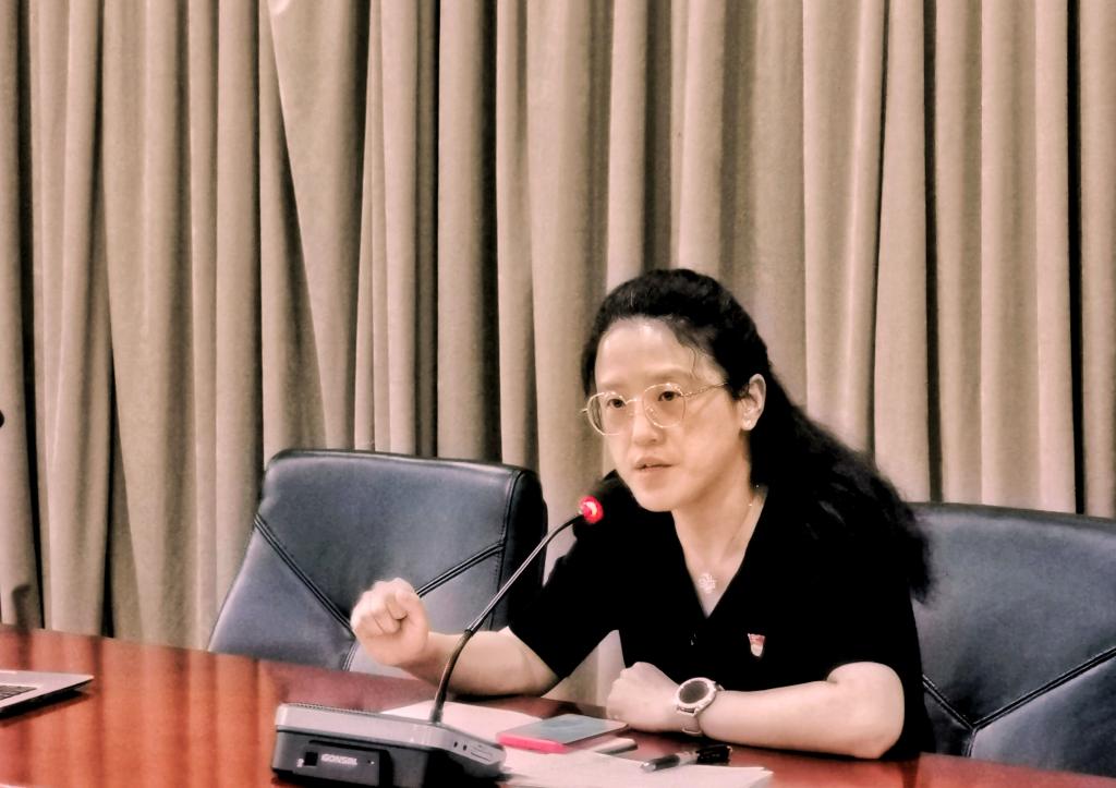 会上,第三支部和外语系支部就党史学习教育分享了支部工作经验。第三支部书记王勤易以“明确目标、精准发力、协同创新”为主题分享工作经验。她介绍了支部如何明确目标,脚踏实地抓支部建设;精准发力,落实支部服务功能;最终如何协同创新,提升支部服务效能精准发力,落实支部服务功能。接着,外语系支部书记杨晓霞围绕“党建引领五育融合的探索与实践”介绍了支部如何通过点线面三级,进行网格化的管理的工作作机制。详细阐述了将“三全育人”、“五育并举”有机融合,构筑培养德智体美劳全面发展的社会主义建设者和接班人的立德树人体系,逐步探索德育铸魂、智育固本、体育强健、美育浸润、劳动教育淬炼的改革路径和方式。