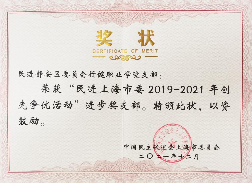 在行健开云online(中国)民进会员们的共同努力下,民进行健开云online(中国)支部荣获“民进上海市委2019-2021年创先争优活动”进步奖。
