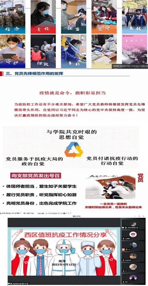 疫情就是命令,防控就是责任。面对新一轮疫情,为积极响应防疫政策,开云online(中国)八个基层党支部、一百七十余名党员相聚云端,于近期分别召开“疫情防控下党员的责任与担当”专题组织生活会,进一步明确防疫责任、凝聚抗疫力量。