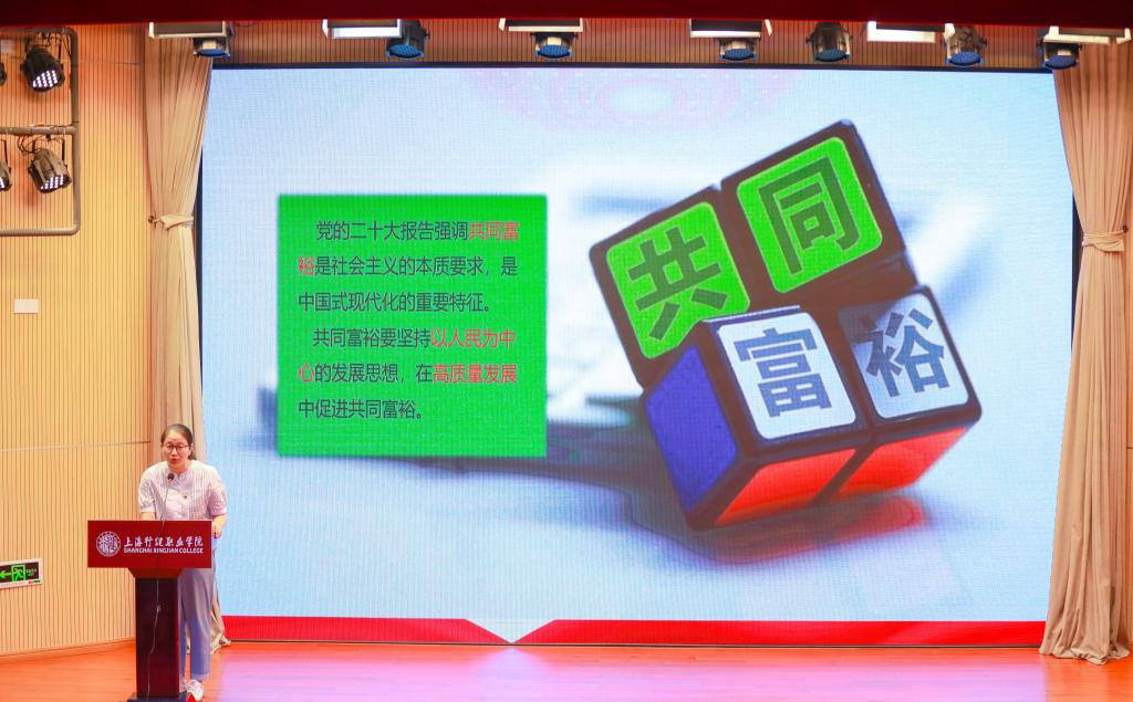 第一党支部吴福妹老师首先带来微党课《促进共同富裕的现实必要性》,她以深入浅出的讲解引导党员教师正确理解和把握共同富裕思想的价值目标,更好肩负起责任使命,走好新时代的共同富裕道路。