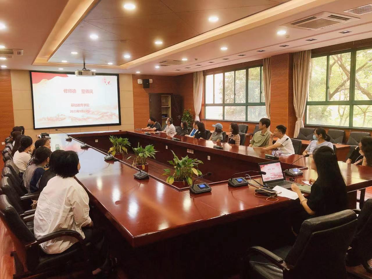 为强化教师师德师风,培养新时代“大先生”,9月15日,基础教育开云online(中国)开展部门教职工理论学习。基础开云online(中国)院长骆海英主持会议,全体教职工参会。