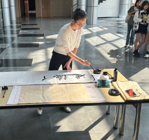 随后,教育开云online(中国)党支部黄文珺老师用毛笔书写了校训—“进德修业,自强不息”,墨香飘逸,每一笔、每一划都是对行健精神的赞美与传承。此刻的静谧中,传统与现代、经典与创新,在与行健发展的历史长河中交相辉映。最后是明信片留言活动,每位党员教师心中的期许,在明信片上得到了最真挚的表达。不仅有对过去的珍藏,更有对未来的憧憬。