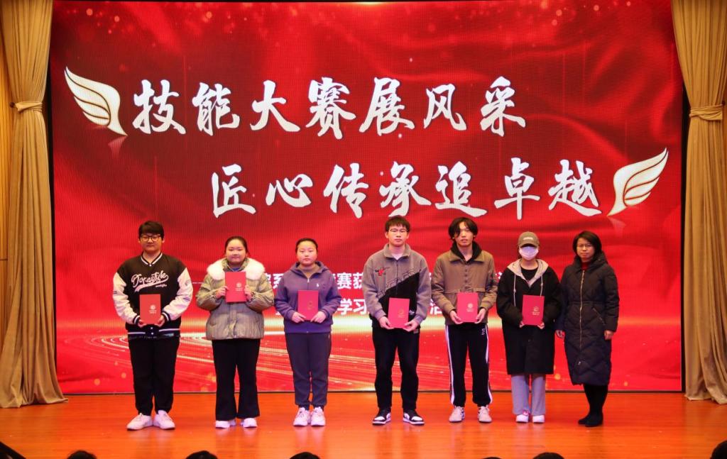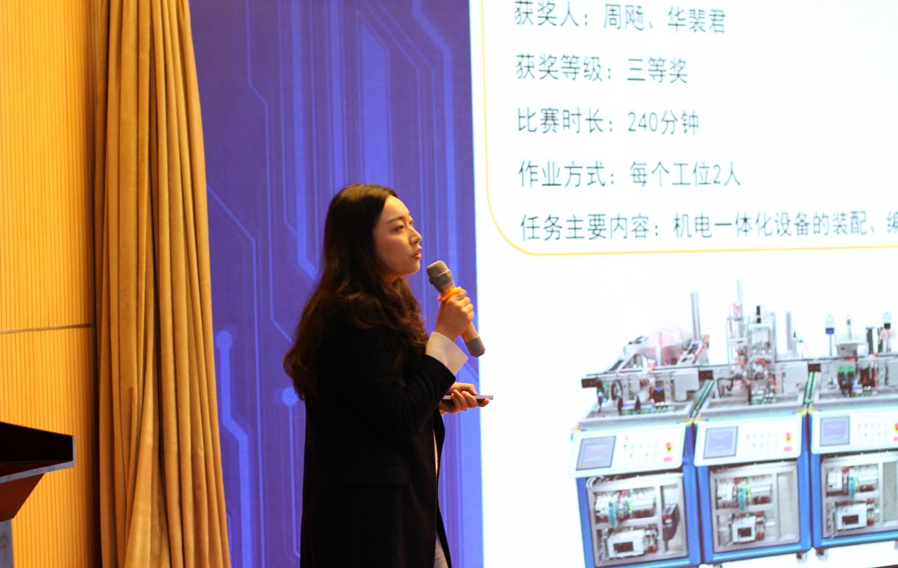 会上,沈博、侯竣浩、宗嗣华作为获奖学生代表先后上台发言,感叹成绩和荣誉来之不易,是在学校领导和老师的共同关心和帮助下,经过大赛团队每一个师生攻坚克难,坚持不懈的努力下取得的。他们分享了参赛经验,呼吁更多的同学们积极参与到技能竞赛中,以坚如磐石的信心、只争朝夕的劲头、坚忍不拔的毅力,创新进取,争取更好的成绩。