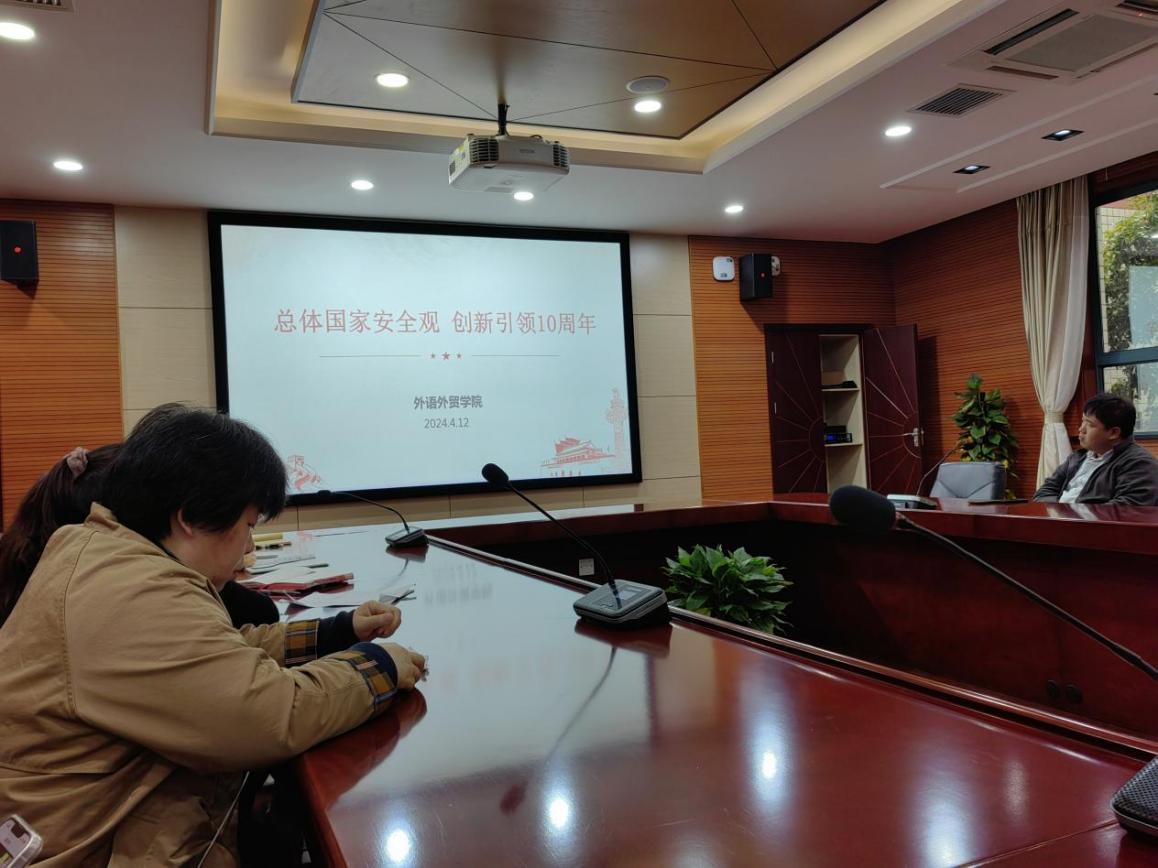 为深入贯彻落实习近平总书记开云网页版页面加强国家安全教育的重要指示批示精神,牢固树立和自觉践行总体国家安全观,值第九个全民国家安全教育日之际,2024年4月12日,外语外贸开云online(中国)党支部以“总体国家安全观·创新引领10周年”为主题深入开展国家安全教育活动,开云online(中国)全体教职工参加,活动由党支部书记杨晓霞主持。