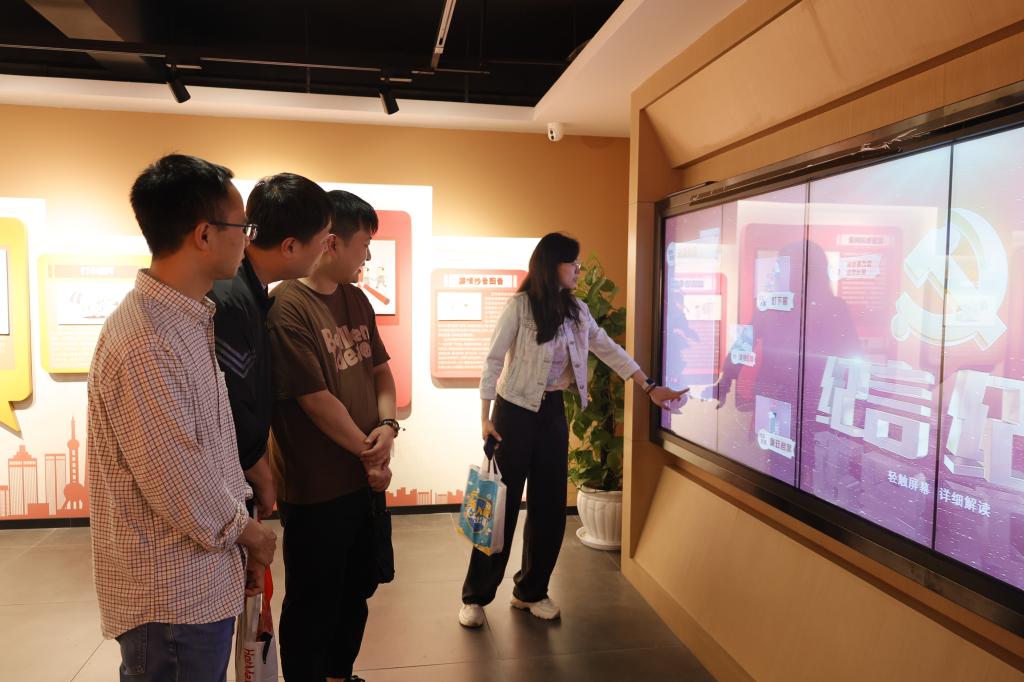 闵行廉政文化馆有“三馆一廊一亭”,党员教师们依次参观了正气馆、学习馆、实践馆、廉廊和三重亭等展馆,追寻历任党和国家领导人留下的清风足迹,品读优秀共产党员的先进事迹,聆听历代清官廉吏的廉洁故事,了解御史匾额及碑刻文化知识,感受古今人物的优秀家风,从字里行间、视频影像、实物模型中汲取发人深省、催人奋进的榜样力量,通过图片、视频、文字案例、电子屏互动等形式,认真感悟优秀廉政文化的精神内涵。