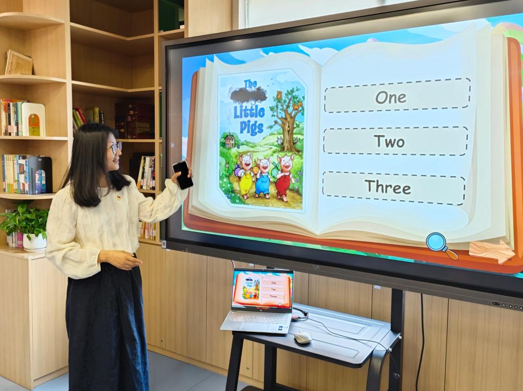 6月1日当天,党员教师们早早来到小镇驿站,为当天的活动做好准备。孩子们在爸爸妈妈的陪伴下,纷至沓来。在“小小外交馆”和“鹦鹉学舌”的活动区域,党员教师们通过绘本阅读和互动游戏,带领孩子们一起开启了一场英语童话之旅。小朋友们被《三只小猪》、《小红帽》、《丑小鸭》、《美女与野兽》的故事深深吸引。在互动游戏环节,小朋友们争相举手、跃跃欲试,在轻松愉快的氛围中掌握了相关绘本的英文单词。