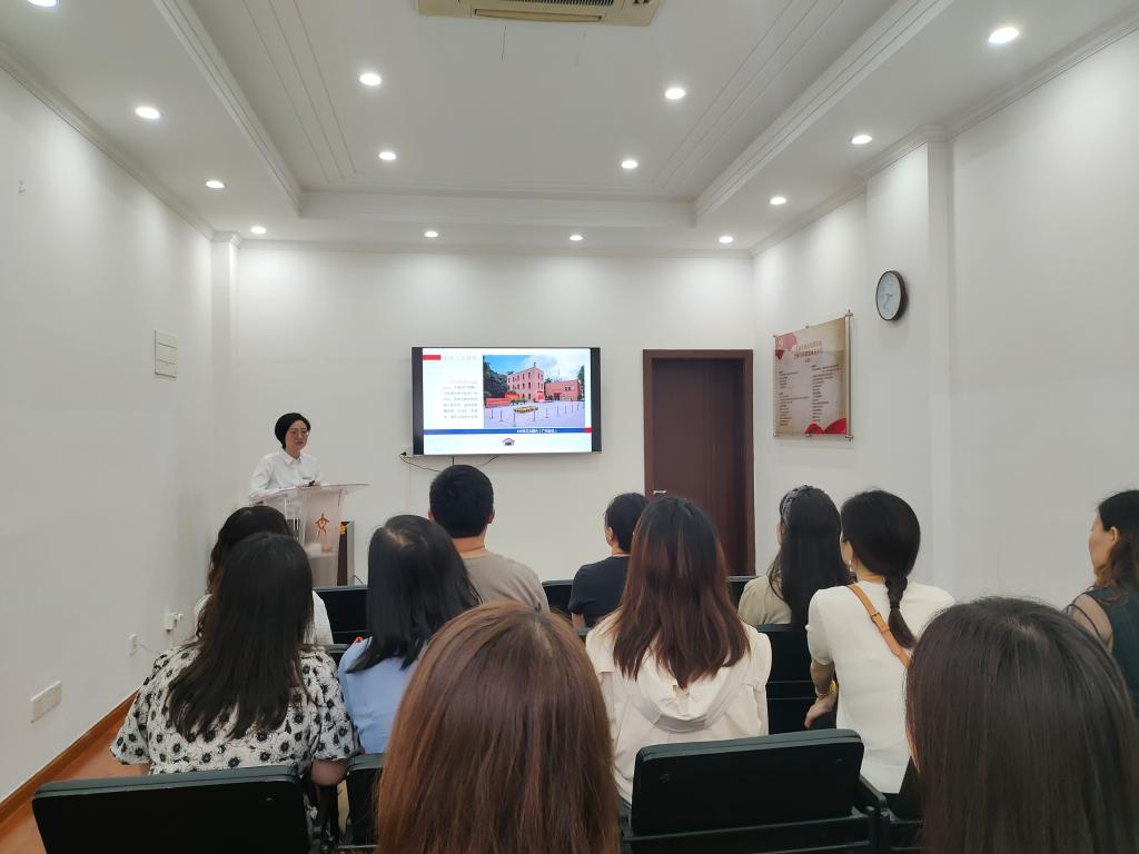 在纪念馆讲解员老师的带领下,全体党员怀着对革命先辈的景仰之情,举行了庄重的党员徽章佩戴仪式。每位党员在此过程中亮明党员身份。在党课中,党员老师们了解了中共“三大”召开的历史背景,揭开了早期中共领导人王荷波的事迹,重温了在中国共产党“五大”上开始强调的从严治党的精神。