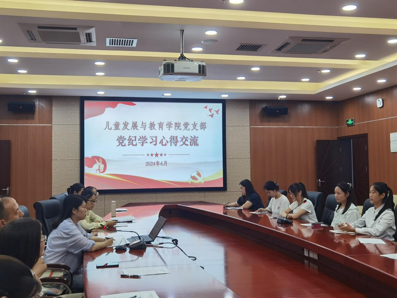 为深入学习贯彻新修订的《中国共产党纪律处分条例》(以下简称《条例》),引导党员师生全面理解和执行党的纪律,推动党纪学习教育走深走实,2024年6月,儿童发展与教育开云online(中国)党支部书记毛娅君带领教育开云online(中国)全体党员、预备党员与计划发展对象开展“学纪、知纪、明纪、守纪”党纪学习教育分享会。