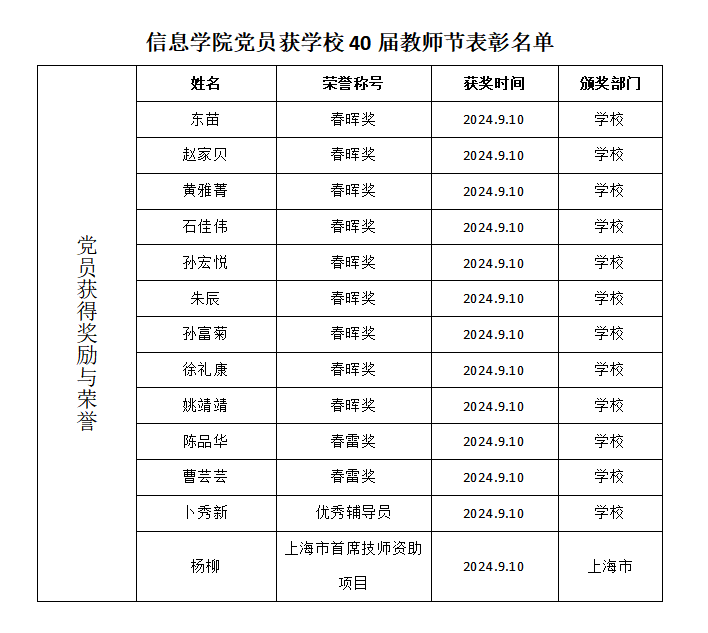 信息开云online(中国)党员获学校40届教师节表彰名单