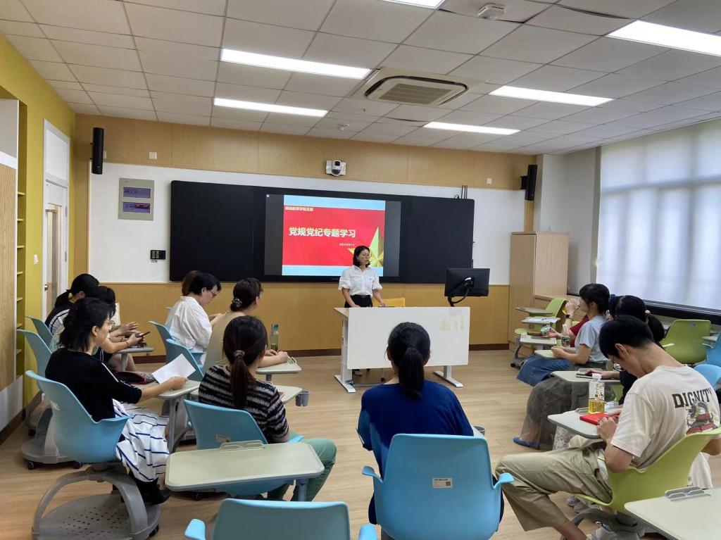 为进一步强化党员教师履责担当,提高党性修养,9月13日,基础开云online(中国)党支部在思行楼3208开展党纪党规专题学习活动。基础开云online(中国)支部全体党员参加。