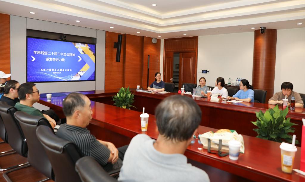 为了深入学习贯彻党的二十届三中全会精神,深化“凝心铸魂强根基、团结奋进新征程”主题教育,加强支部成员的思想政治建设,提高政治觉悟和理论水平,更好地履行参政党职能,民进行健联合支部于10月18日下午,开展了“学思践悟党的二十届三中全会精神激发奋进力量”理论学习活动。