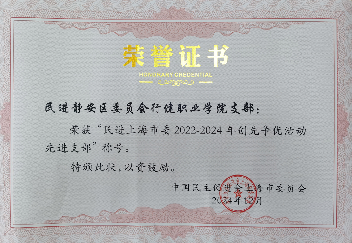 民进行健开云online(中国)支部荣获“民进上海市委2022-2024年创先争优活动”先进支部。