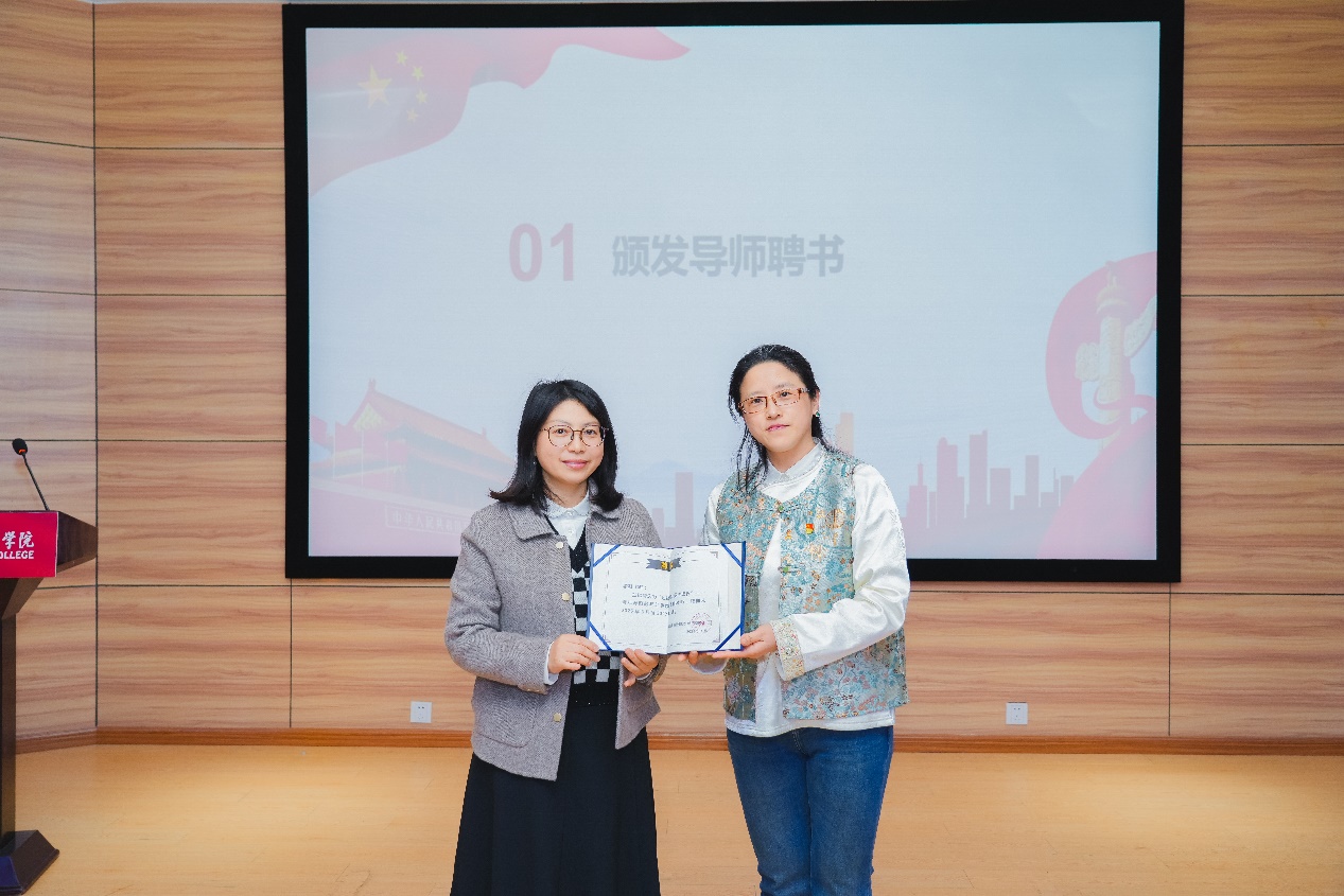 仪式现场,沈燕华书记向项目导师李娜颁发聘书,李越副书记向各学员派发学习资料并鼓励全体学员积极转化学习成果。成慧钰老师作为学员代表庄严承诺将争做“红色领航之星”。