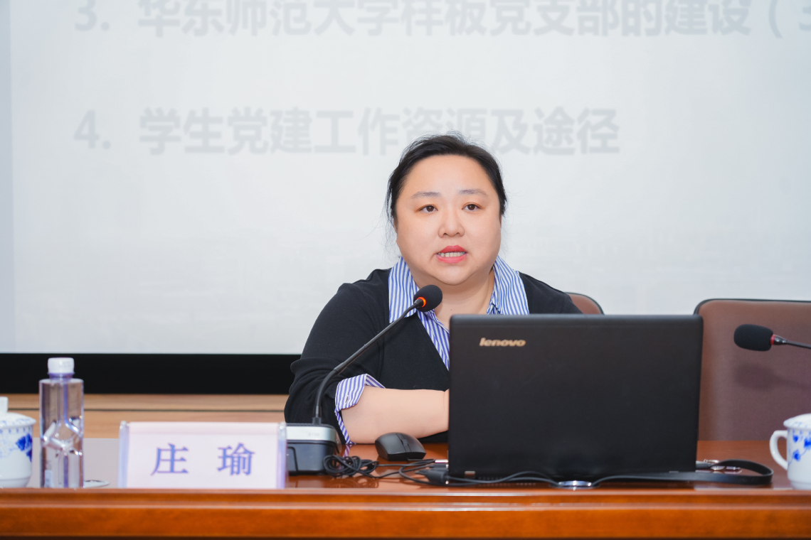 庄瑜教授凭借多年积累的丰富党建工作经历,深入解读党支部工作条例要点,助力支部工作依规有序开展;细致剖析样板党支部文件精神,挖掘其中的关键要求与发展方向;生动讲述华东师大样板党支部建设案例,从党员教育管理、活动开展等多方面给出建设性思路;慷慨提供丰富的党建工作资源及途径,开拓创新整合校内外资源,为党建工作注入活力。整个专题报告从理论指导、到政策解读再到实践探索,不仅增加了党务工作者对样板党支部建设的认识,为其开展工作提供了极具操作性和指导性的建议,更激发了党务工作者积极探索创新、勇于担当作为的决心和信心。相信通过学习样板党支部的先进经验,各党支部将更好地把握党建工作的规律,推动我校党建工作全面提质增效。