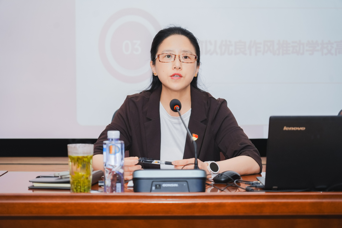 最后,沈燕华书记着重讲述了如何以优良作风推动学校高质量发展。她指出,学校作为培养高素质技术技能人才的重要阵地,必须将党风建设融入学校发展的各个环节。她要求全体党务工作者要锲而不舍落实中央八项规定精神,严格自律,勇于担当,切实将党的纪律和规矩落实到日常工作中。重点坚持以调研为抓手,破解发展难题;以精简为原则,提升治理效能;以文化为引领,涵养清廉校风;以监督为保障,筑牢纪律防线。具体而言,要强化师德师风建设,引导教师廉洁从教;优化学校管理,提高工作效率和服务质量;加强廉洁文化建设,营造风清气正的校园环境。通过各类举措,推动学校在人才培养、科学研究、社会服务等方面取得更大进步。