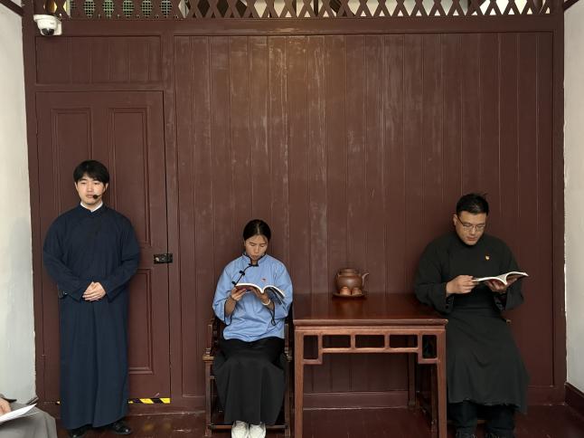 党课伊始,党员教师们整齐佩戴党员徽章,徽章闪耀间,使命感在每位党员心中升腾。陈列馆讲解员带领党员穿梭历史长廊。在上海毛泽东旧居的一砖一瓦、珍贵文物间,党员们深入了解革命先辈在此开展工作的艰辛与坚守。“党课聆听” 环节,党员们聚焦《毛泽东与静安》《一张全家福》等故事。讲述者以生动语言,还原毛泽东同志在静安时期为革命奔走、与人民共情的点滴,以及承载着家国情怀的 “全家福” 背后的动人过往。