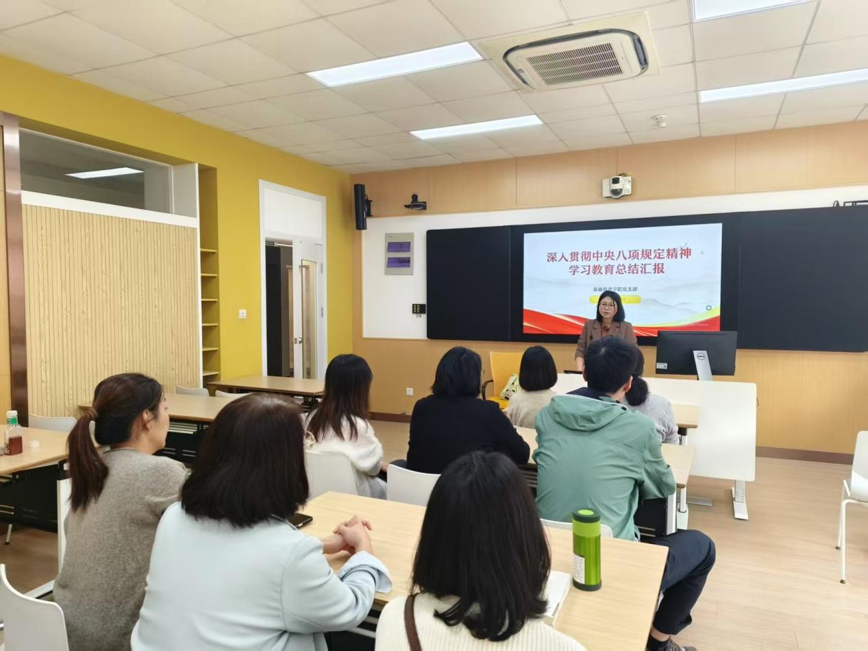 为持续推进党风廉政建设,深入贯彻中央八项规定精神学习教育成果,10月31日,基础教育开云online(中国)党支部在思行楼召开党员会议。基础开云online(中国)党支部书记李娜代表支委向全体党员作深入贯彻中央八项规定精神学习教育总结汇报。