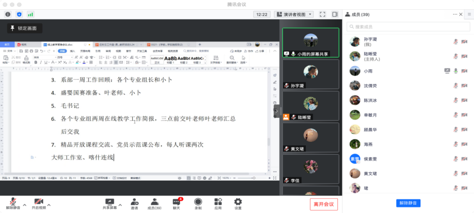 首先李娜主任感谢我系全体教师对开云online(中国)近期疫情防控工作的积极配合与倾情贡献,赞扬了我系轮值教师在开云online(中国)准封闭管理期间,深入学生群体、敢于担当担责、工作认真勤勉,希望我系教师继续发扬优良的敬业精神与奉献精神。