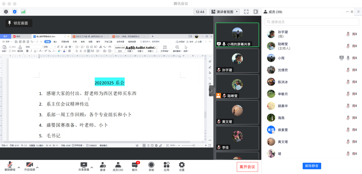 2022年3月25日下午,学前教育系通过腾讯会议的线上方式开展了系部交流会。学前教育系主任李娜、党支部书记毛娅君及我系全体教师出席了此次会议,会议由李娜主任主持。