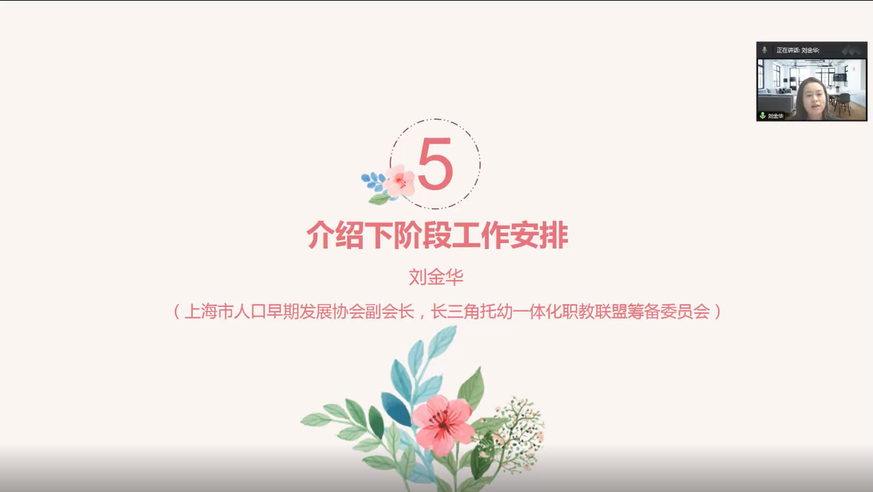 会议的最后,由上海市婴幼儿专委会会长刘金华发言,介绍联盟下阶段工作计划安排。主要体现两个方面,第一方面:扩大范围,吸纳成员单位;例如,可以吸纳卫生保健类的院校、妇幼保健院、托育机构、学前教育机构等。第二方面:筹备联盟的启动大会,希望各联盟成员单位在今后的工作当中能够积极支持共同参与。