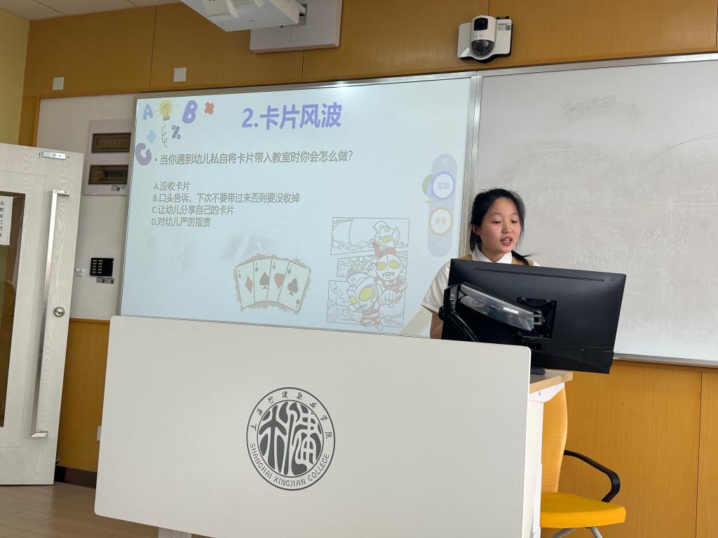 5月12日下午,在学前系专业主任申海燕老师的组织下,开展了本次教育实践活动的展示,27位学生汇报了本次教育实践的专业成长与实践收获,系内王烨芳、单敏月、黄文珺、凡丽、李阿蕾等骨干教师担任了活动评委,部分学生参加了现场观摩,活动效果较好,汇报学生的表现赢得了师生的一致好评。
