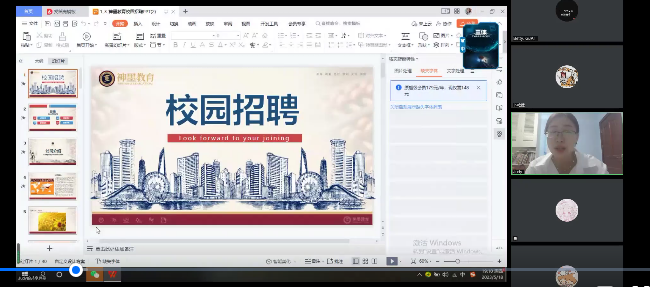 5月18日晚上,学前教育系为一批专升本失利、工作开展不顺利的学生召开了线上双选会,本次双选会由学前系李娜主任牵头,邀请了彭澄儿童成长中心、神墨国际教育集团、上海旭童托育园3家单位。这3家单位共计4个岗位,预计招募46人。就业指导老师卜艳婕及各毕业班辅导员组织了近60名学生参加此次招聘活动。