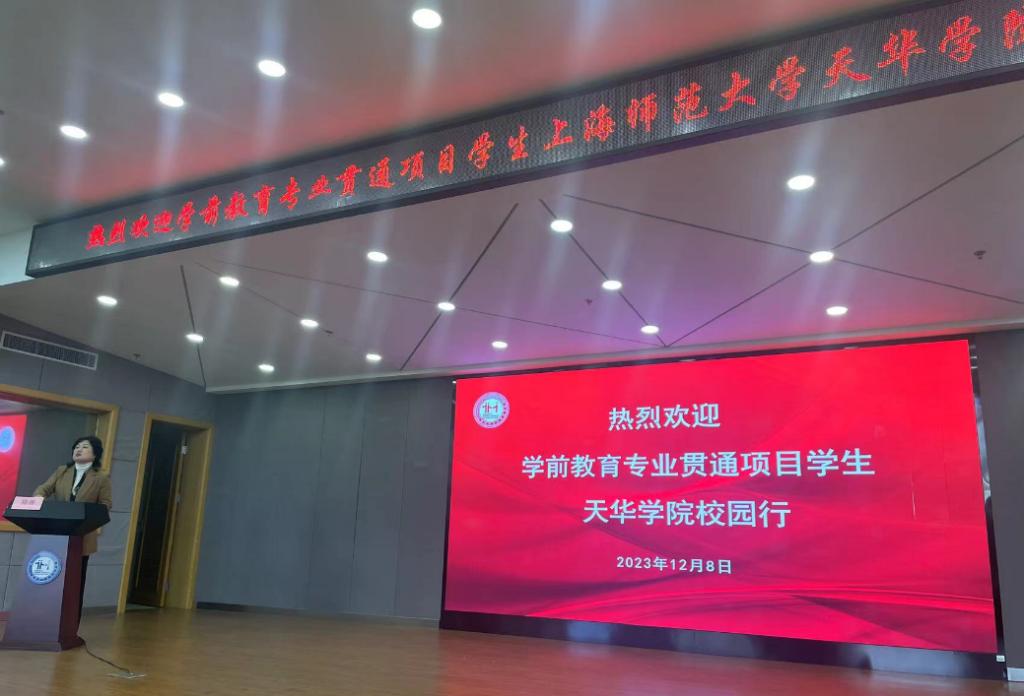 2023年12月8日,教育开云online(中国)22级、23级高本贯通班学生在专业主任申海燕、辅导员蔡鹏和施伟荣、学生秘书卜艳婕等老师的带领下,前往上海师范大学天华开云online(中国)参观校园,两校教师同时举行联合教研活动。