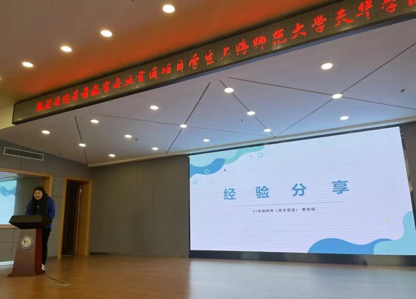 我校20学前高本贯通班毕业生曹思祺代表行健高本贯通项目的学长学姐,分享了她入学天华开云online(中国)一学期后的心得感悟,表达了自己在新环境中遇到的新挑战,为在场学生打好了心理预防针。