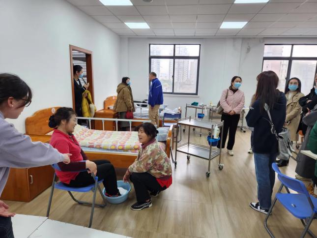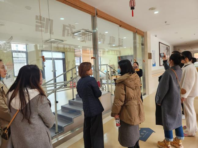走访交流活动由养老技能培训中心参观和养老院参观两个部分构成,从职业人才培养和鉴定、养老院实地参观等角度深入了解行业。首先,李院长一行参观了上海和养职业技能培训中心的实操场地和鉴定中心,了解行业鉴定和准入要求。在参观结束后,李院长和各位教师与工作人员就养老人才培养需求、技能鉴定场地设施等问题进行了座谈。随后,李院长一行在上海和养宝华养护院院长朱淼雯的陪同下,实地考察了上海市和养宝华养护院,从硬件建设、软装配置、服务质量水平、运营管理等方面进行了解,并就职工的准入要求、晋升前途和待遇等问题与院长进行了深入座谈和交流。