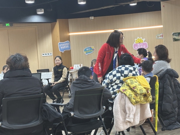 即兴故事接龙环节中,志愿者们化身故事编织者,为孩子们和家长编织出一个个奇幻而温暖的故事情节;传玩具游戏环节中,志愿者们巧妙地设置问题,考验家庭成员之间的默契与协作;亲子即兴绘画环节更是充满了创意与温情,志愿者们耐心指导家长们与孩子共同创作,用色彩和画笔表达内心的情感。志愿者们耐心解答大家遇到的问题,引导活动参与者顺利完成此次活动,他们的热情服务赢得了市民们的一致好评。