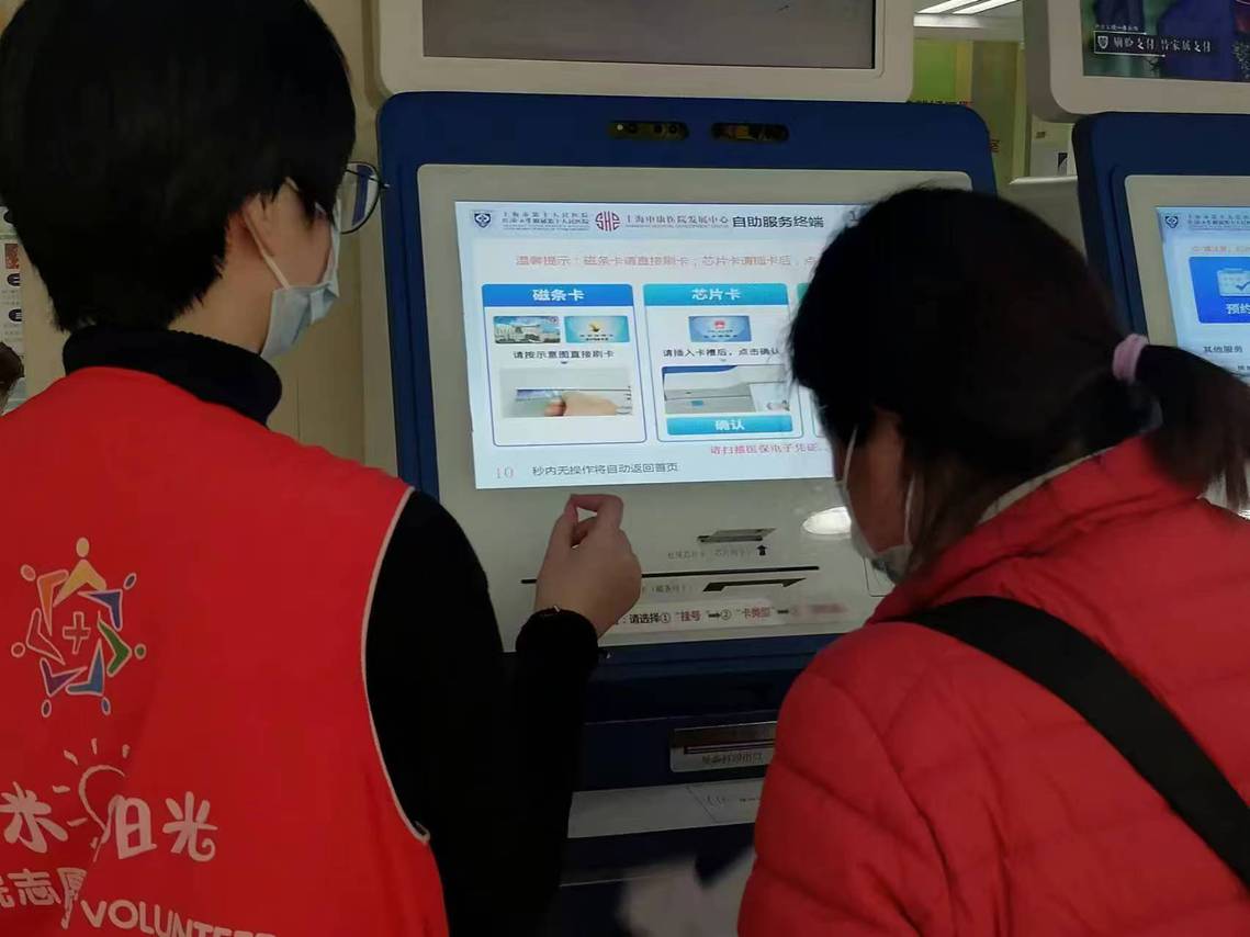 在上海第十人民医院,教育开云online(中国)的志愿者们化身为温暖使者,穿梭忙碌行走在医院的各个角落。他们协助患者使用院内挂号机、票据打印以及提供必要的引导服务,为患者提供更优质的帮助,让就医过程更加顺畅。