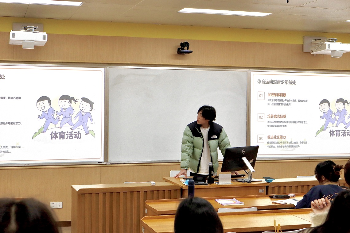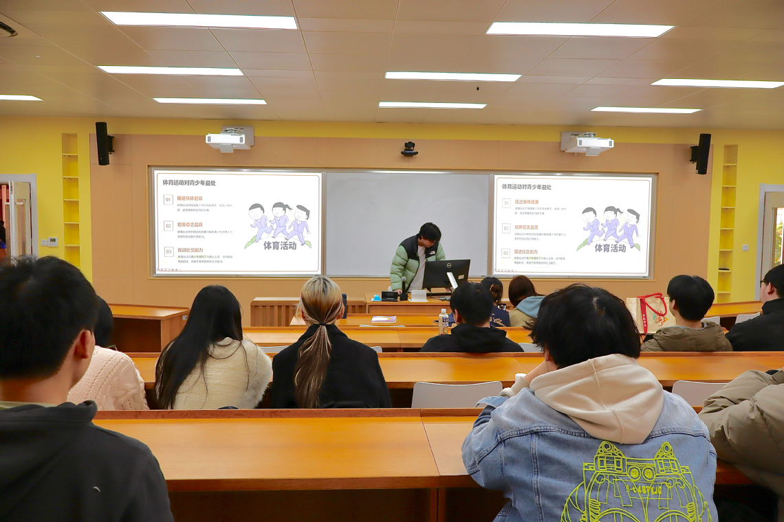 宣讲开始,体育部部长邬赟斐对体育锻炼的基础知识进行了全面系统的概述,同时讲述了体育运动对青少年的益处,在促进身体健康的同时,还能培养社交能力和意志力。并以此来呼吁同学们积极参加各类体育运动,从而达到强身健体的作用。他重点强调了体育运动前热身活动的重要性。在体育运动前应养成良好的热身习惯,这不仅有助于提高运动表现,还可以预防运动损伤和促进身体恢复。