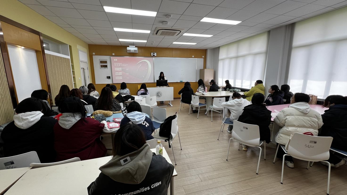班会期间,主讲先以“无手机课堂”试点为突破口,通过课堂专注度打卡等举措,鼓励同学们更加专注于课堂内容。