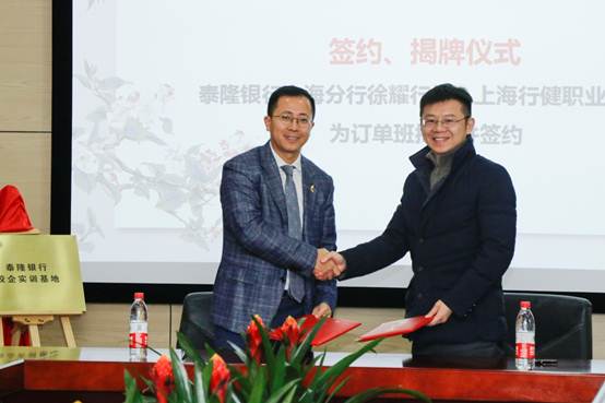 2017年10月,经管系工商管理专业与泰隆银行进行接洽、协商、前期的初步合作,双方经过了14个月的考察,2018年12月28日迎来了泰隆银行订单班的开班典礼。出席会议的嘉宾有泰隆银行上海分行徐耀行长、人力资源张岩总经理、虹口支行(筹)陈煜行长、闵行支行业务部赵士军总经理,分行人力资源部刘智德老师。我校出席典礼的有黄群院长、章卫芳副院长、经管系严威主任、工商管理专业于林老师和2018级工商班的20名同学。