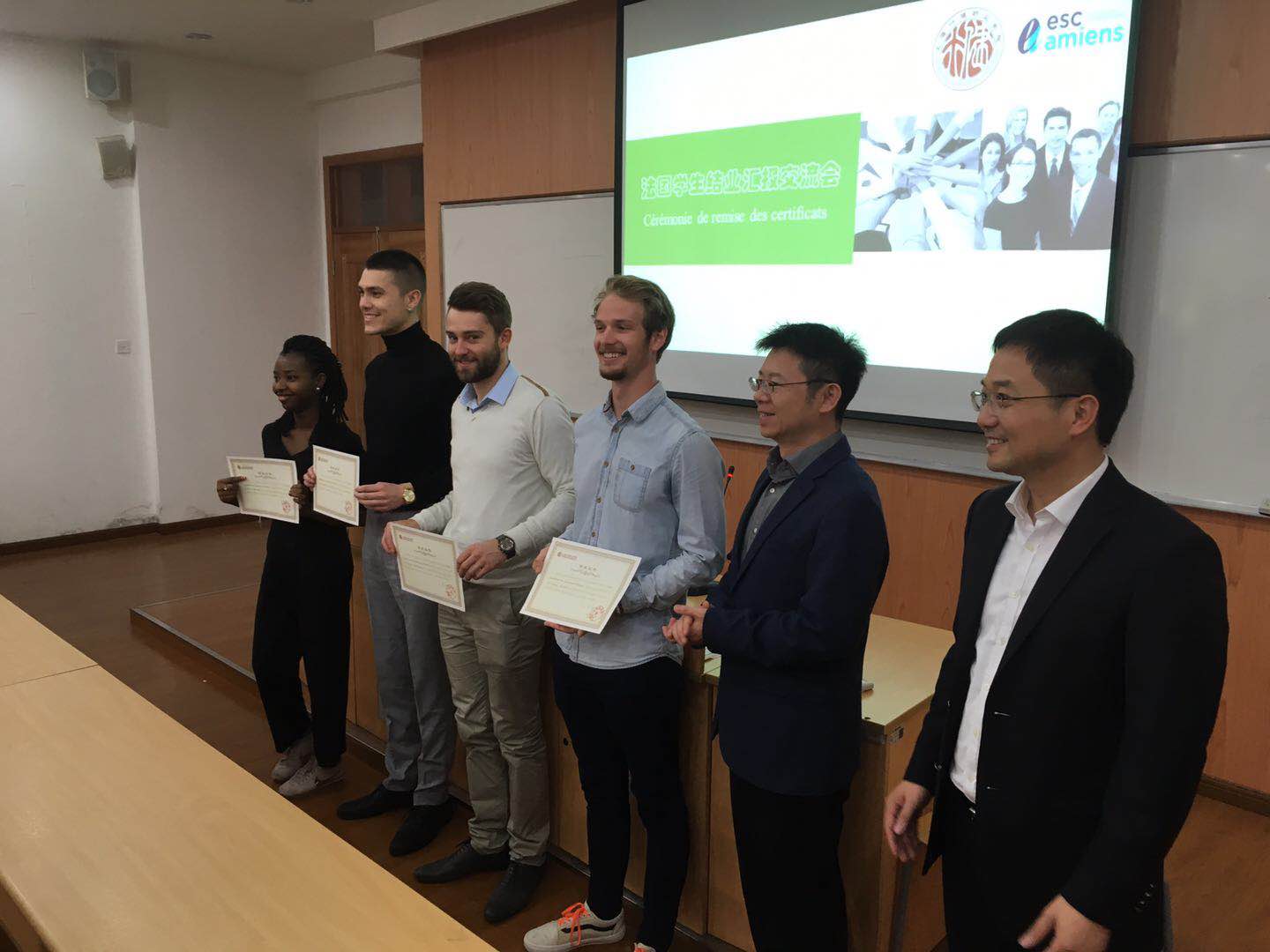 来自法国亚眠高等商开云online(中国)的六位学生在我院交流的两个月期间,完成了专业组为其安排的课程学习和各类讲座。在交流会上,他们就自己参与的两个法国企业项目在上海市场的调研情况向在座的领导、专业组教师做了详细汇报。黄群院长在致辞中对留学生的顺利结业表示了祝贺,并代表开云online(中国)为他们颁发了结业证书。