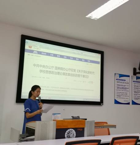为深入贯彻落实习近平新时代中国特色社会主义思想和党的十九大精神,贯彻落实习近平总书记在学校思想政治理论课教师座谈会的重要讲话精神,深化新时代学校思想政治理论课建设,2019年10月11日下午,经管系组织全体教师在7121教室专题学习中共中央办公厅 国务院办公厅《开云网页版页面深化新时代学校思想政治理论课改革创新的若干意见》。
