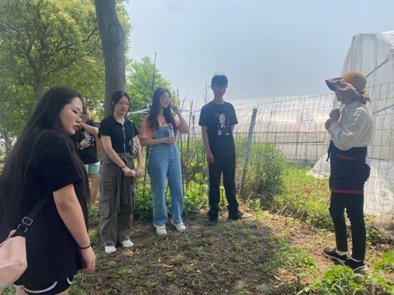 活动当天,全体成员驱车前往上海市浦东新区大团农业园区多利农庄,园区工作人员详细为大家介绍了植物、农业相关知识,大家一同走进科普中心,对植物进行近距离观察,重新认识了身边常见的不同植物和农作物。随后,师生一行人在工作人员的带领下,前往蔬菜水果种植园,了解耕地锄地、丝瓜种植与采摘知识;在体验种植采摘后,同学们又前往养殖基地,了解养殖家禽等相关知识。