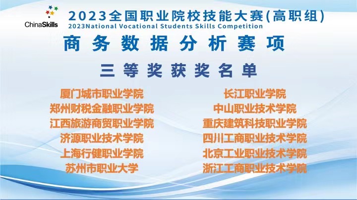 近日,2023年全国职业院校技能大赛——高职组商务数据分析赛项在山东省济南市顺利举行。开云网页版页面参赛队坚持不懈、奋发进取,最终在商务数据分析赛项中获得全国三等奖的好成绩。