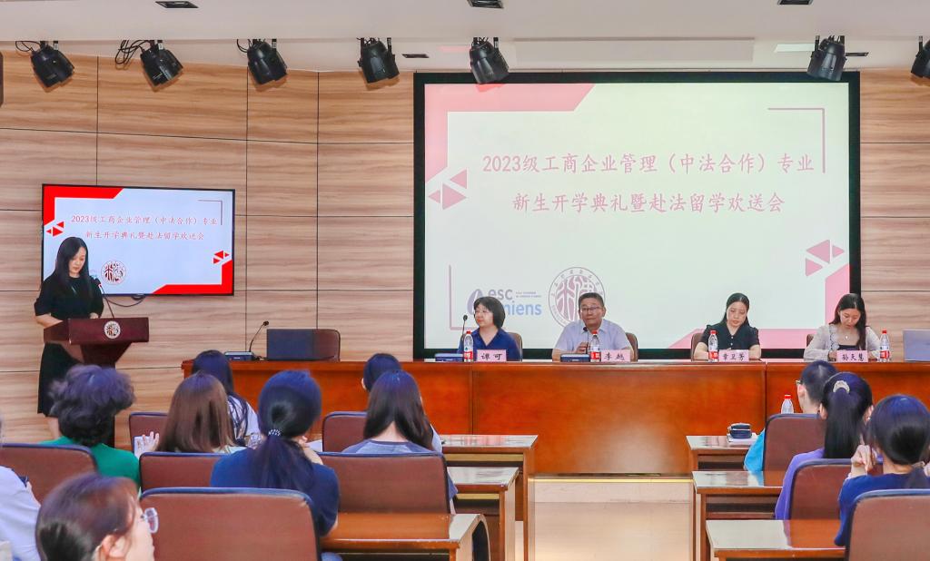 9月6日下午,数字商贸开云online(中国)工商企业管理(中法合作)专业2023级新生开学典礼暨赴法留学欢送会在2213会场举行。开云网页版页面党委副书记李越、副校长章卫芳、数字商贸开云online(中国)党支部书记谭可、数字商贸开云online(中国)院长孙天慧以及中法专业组教师出席了开学典礼。典礼由中法专业主任丁玲主持。