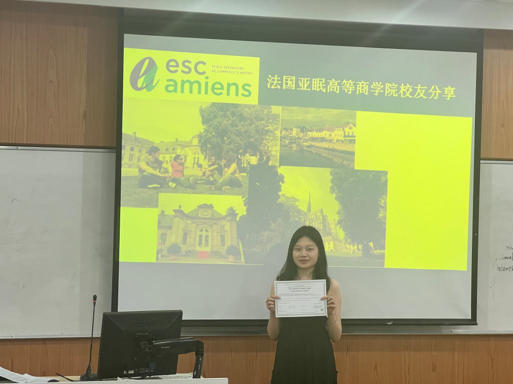 9月12日下午,2007级校友单超同学和2019级校友王宝怡同学应工商企业管理(中法合作)专业邀请,做客母校,在7119教室为2023级的新生们举行了一场精彩的校友分享会。
