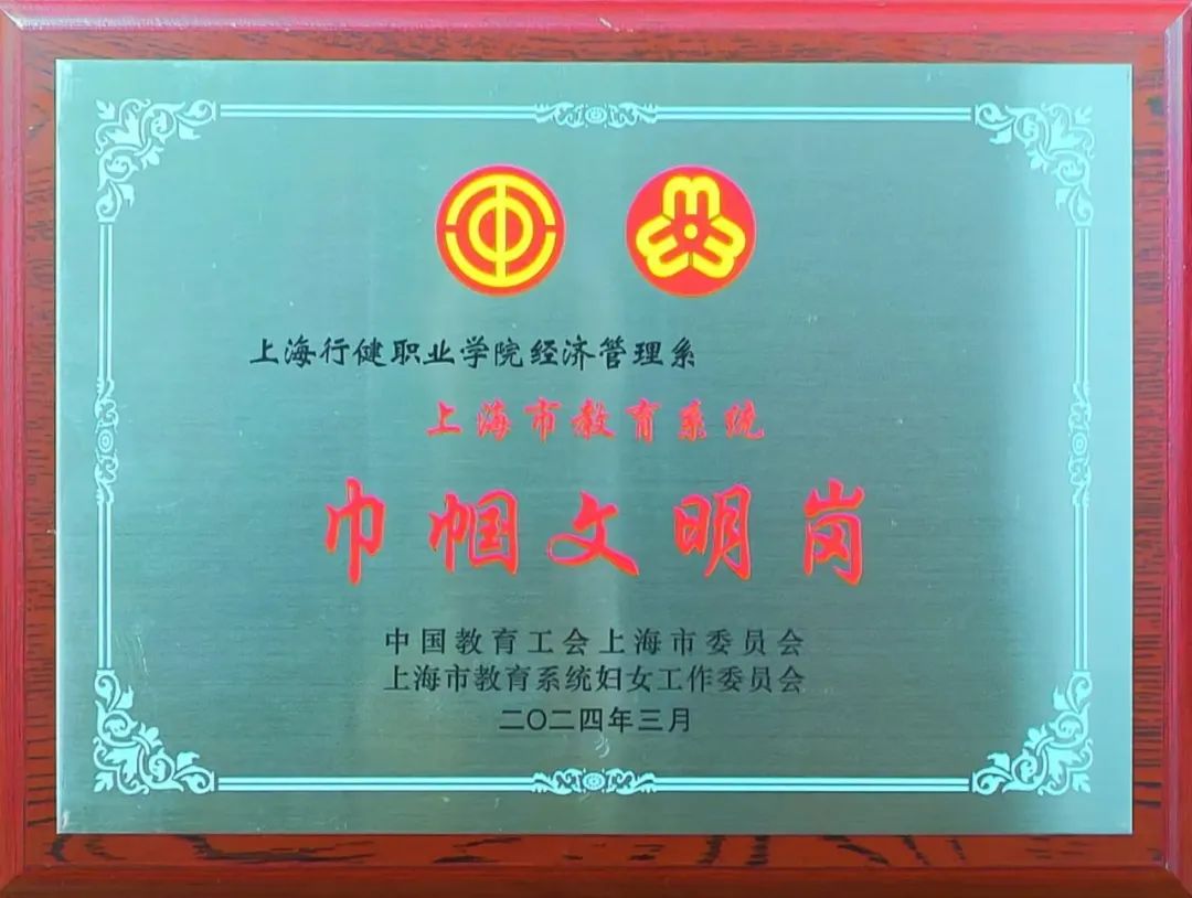 我校数字商贸开云online(中国)(原经济管理系)喜获2023年度上海市教育系统巾帼文明岗。