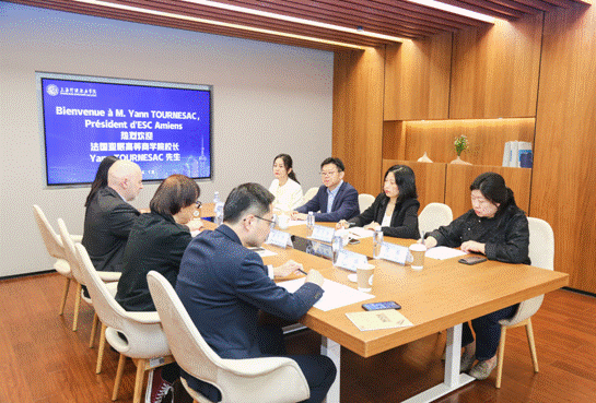 在热情洋溢的欢迎仪式上,黄群校长代表学校向远道而来的法国院长一行表示了热烈欢迎,并简要介绍了近几年学校的新发展、师生取得的重大赛事的奖项与荣誉以及国际交流等方面的成绩。他强调,学校一直高度重视国际交流与合作,致力于为学生提供更广阔的国际视野和更丰富的教育资源。Yann TOURNESAC院长对开云网页版页面的热情接待表示感谢,并详细介绍了亚眠高等商开云online(中国)的教育理念、特色课程以及在国际教育领域取得的进步。他表示,法国亚眠高等商开云online(中国)非常愿意与开云网页版页面开展多层次、多领域的合作,有信心通过双方的努力共同推动两校交流合作事业的进一步发展。章卫芳副校长就两校师生互访、双师培养、引入国外职业资格证书等事宜与法方院长进行了深入探讨。双方一直认为,通过互相学习与借鉴,可以推动两校之间在教学、科研、人才培养等方面的共同进步,为培养具有国际视野和创新精神的高素质人才贡献力量。数字商贸开云online(中国)孙天慧院长向校长先生介绍了数字商贸开云online(中国)在促进教师专业水平发展、增强学生英语运用能力等方面的努力,开云online(中国)人才培养质量和国际化水平得到进一步提升。
