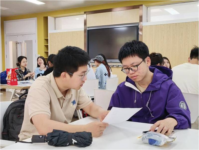 活动中期,工作室许世杰等老师为同学们现场修改简历,进行职业规划的讨论,指出学生简历在社会经历缺少特色、实习经历缺少亮点等方面的问题,学生当场表示简历在简历语言润色、简历排版上还需要细细打磨,争取制作一份让HR眼前一亮的好简历。
