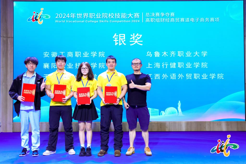 10月24日至28日,2024年世界职业院校技能大赛总决赛争夺赛高职组财经商贸赛道电子商务赛项在广东珠海举行,来自全国各省、自治区、直辖市高职院校的63支代表队展开激烈角逐。我院钟一杰老师指导,电子商务专业史雅静、金瀚文、陈梓杭、李由4位同学组成的参赛团队凭借扎实专业素养和现场优秀表现获得银奖,这也是在该赛项继之前全国三等奖之后的又一新突破。